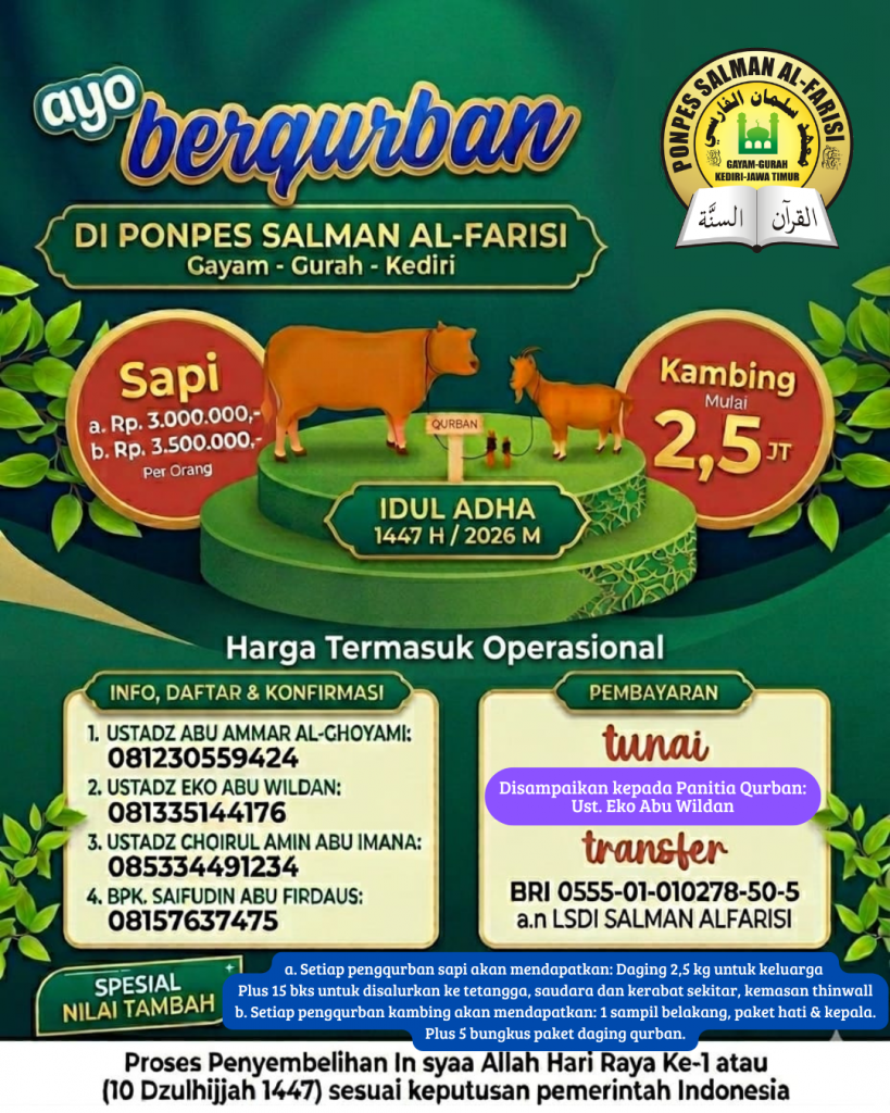 AYO BERQURBAN DI PONPES SALMAN AL FARISI GAYAM GURAH KEDIRI IDUL ADHA 1447 H/ 2026 M